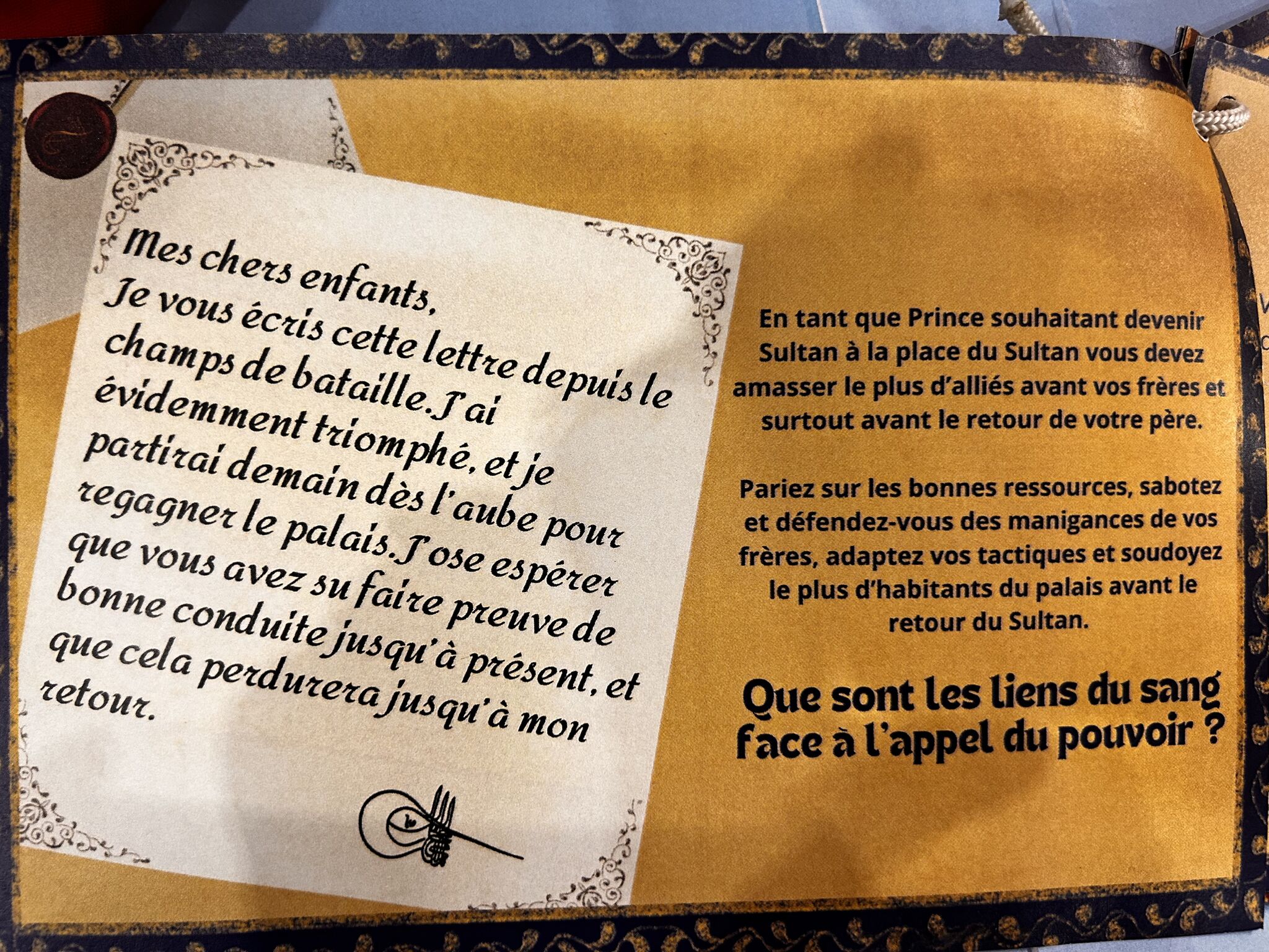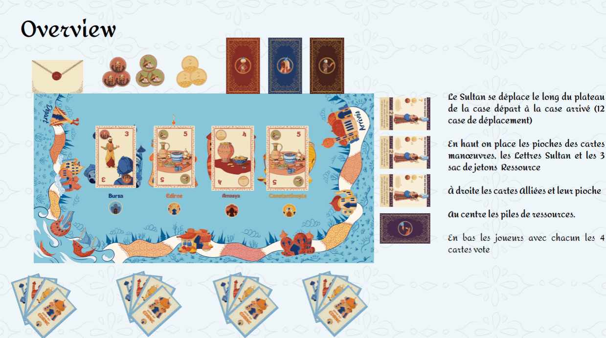 Additionally, I wrote the Sultan’s Letters, a recurring event mechanic linked to the movement of the Sultan pawn at the end of each round.