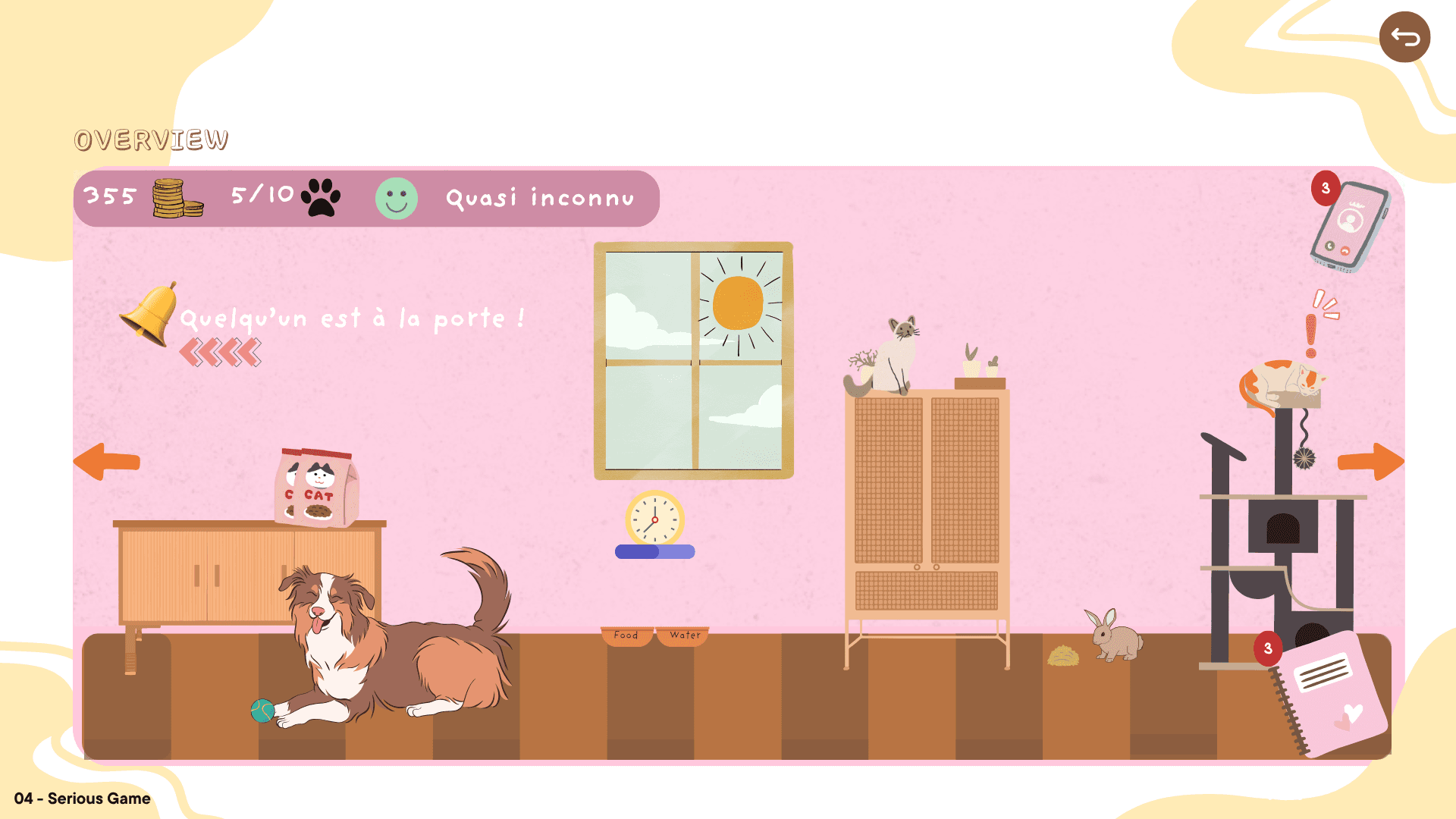 Perfect Fit is a warm and engaging game designed to raise awareness about the responsibilities of pet adoption. Players learn to recognize and respond to the unique needs of each animal while managing a small shelter, balancing food, comfort, health, and happiness. The game creates a meaningful connection between play and reality, encouraging responsible decision-making and providing real-world calls to action, such as links to animal welfare organizations like the SPA. By combining empathy, strategy, and education, Perfect Fit offers an experience that is both charming and impactful, showing that caring for animals is a commitment that extends beyond the screen.